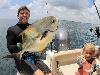 Offshore Fishing - You pay all the expenses and allow me to Scuba Dive I will take you. Commonly this is 100 gallons of Fuel and a 150 pounds of Ice plus some tackle, food, and water. A tip as well if you want a web page gallery like you see when clicking on the thumbnails above plus a Facebook Album to share. A Common Range is $400-$800. Split this 4-ways for 4 persons and it's $100-$200 per person. What a Deal! No minimum number of persons, but I may join other fishermen to your trip - up to four persons. This means you don't have to worry about getting your buddy's to comit. If you want to go fishing, just book yourself. I can legally take up to 6 persons, but it works much better if kept to four persons or less. If you have children 12 years or younger, please bring them a life jacket that fits them properly. They are required by law to wear it while underway. Fuel is billed at current national average for mid-grade and measured by a floscan. My Yamaha 4-Stroke Engine is as economical as they get, but Trip Fuel can range from 25 to 130 gallons depending on where you want to fish. View the trips by clicking the above thumbnails and you can read in the report how much we burned on that trip. |