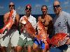 Offshore Fishing - You pay all the expenses and allow me to Scuba Dive I will take you. Commonly this is 100 gallons of Fuel and a 150 pounds of Ice plus some tackle, food, and water. A tip as well if you want a web page gallery like you see when clicking on the thumbnails above plus a Facebook Album to share. A Common Range is $400-$800. Split this 4-ways for 4 persons and it's $100-$200 per person. What a Deal! No minimum number of persons, but I may join other fishermen to your trip - up to four persons. This means you don't have to worry about getting your buddy's to comit. If you want to go fishing, just book yourself. I can legally take up to 6 persons, but it works much better if kept to four persons or less. If you have children 12 years or younger, please bring them a life jacket that fits them properly. They are required by law to wear it while underway. Fuel is billed at current national average for mid-grade and measured by a floscan. My Yamaha 4-Stroke Engine is as economical as they get, but Trip Fuel can range from 25 to 130 gallons depending on where you want to fish. View the trips by clicking the above thumbnails and you can read in the report how much we burned on that trip. |